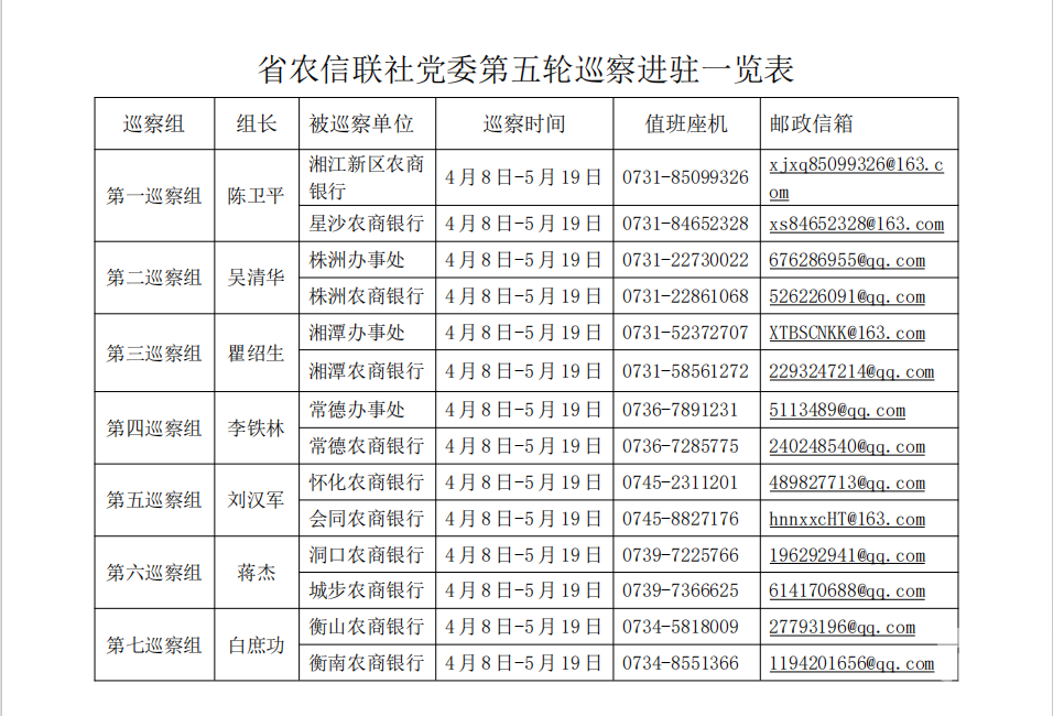 4月8日,省农信联社党委第五轮巡察7个巡察组完成对株洲、湘潭等3个办事处、湘江新区、星沙等11家农商银行的进驻工作,省农信联社党委第五轮巡察全面展开。